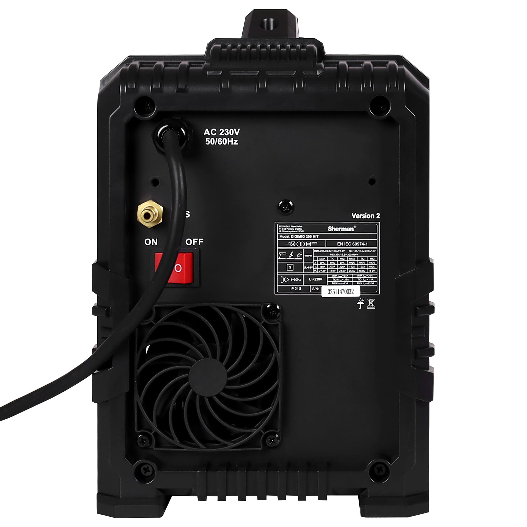 SHERMAN DIGIMIG 200 HIT je synergická invertorová svářečka určená ke svařování uhlíkových ocelí, nerezových ocelí a neželezných kovů. Zařízení umožňuje práci metodami MIG/MAG (manuálně i synergicky), MMA (obalenou elektrodou) a TIG Lift DC.