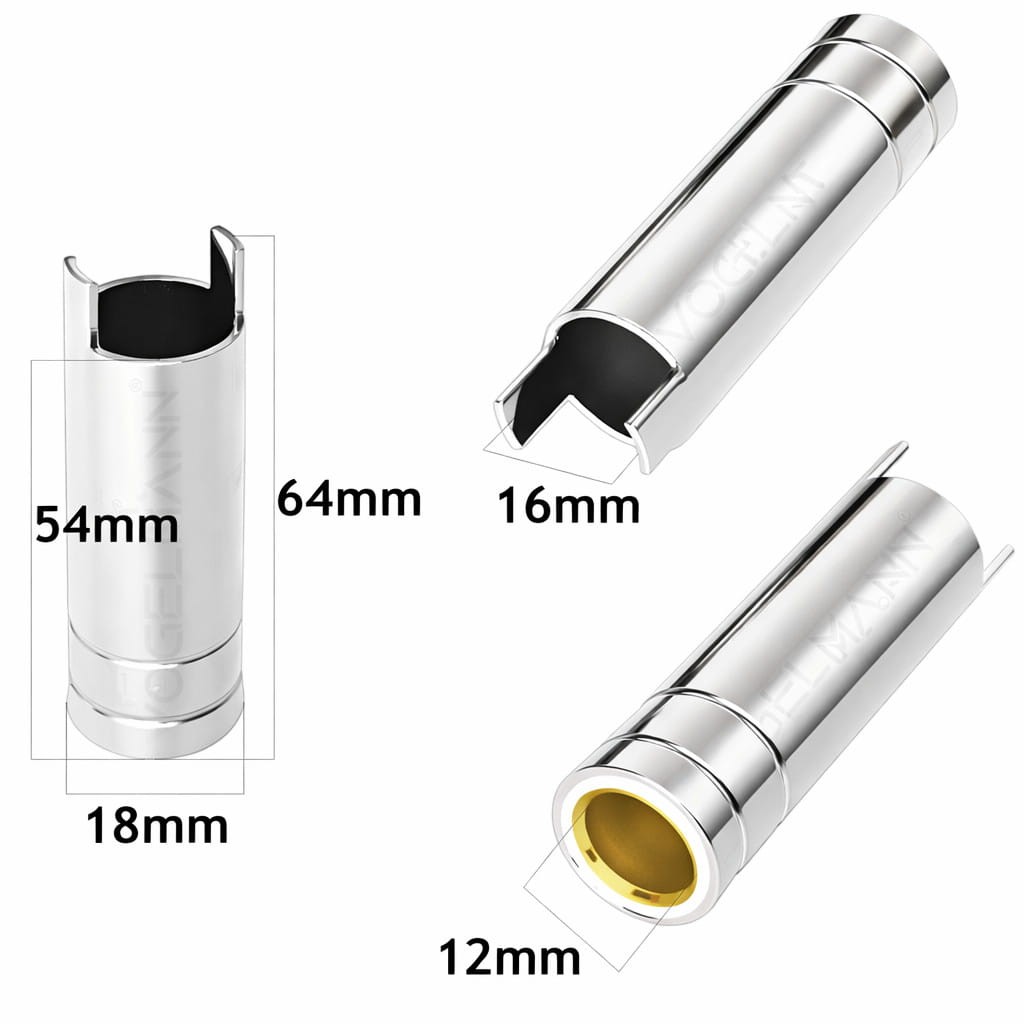 Díky prodloužené konstrukci (64 mm délky) umožňují přesné vedení svářecího drátu a precizní krytí svarového bodu. Ideální řešení pro opakovatelné a čisté svary, například v lehkém průmyslu nebo automobilovém sektoru.