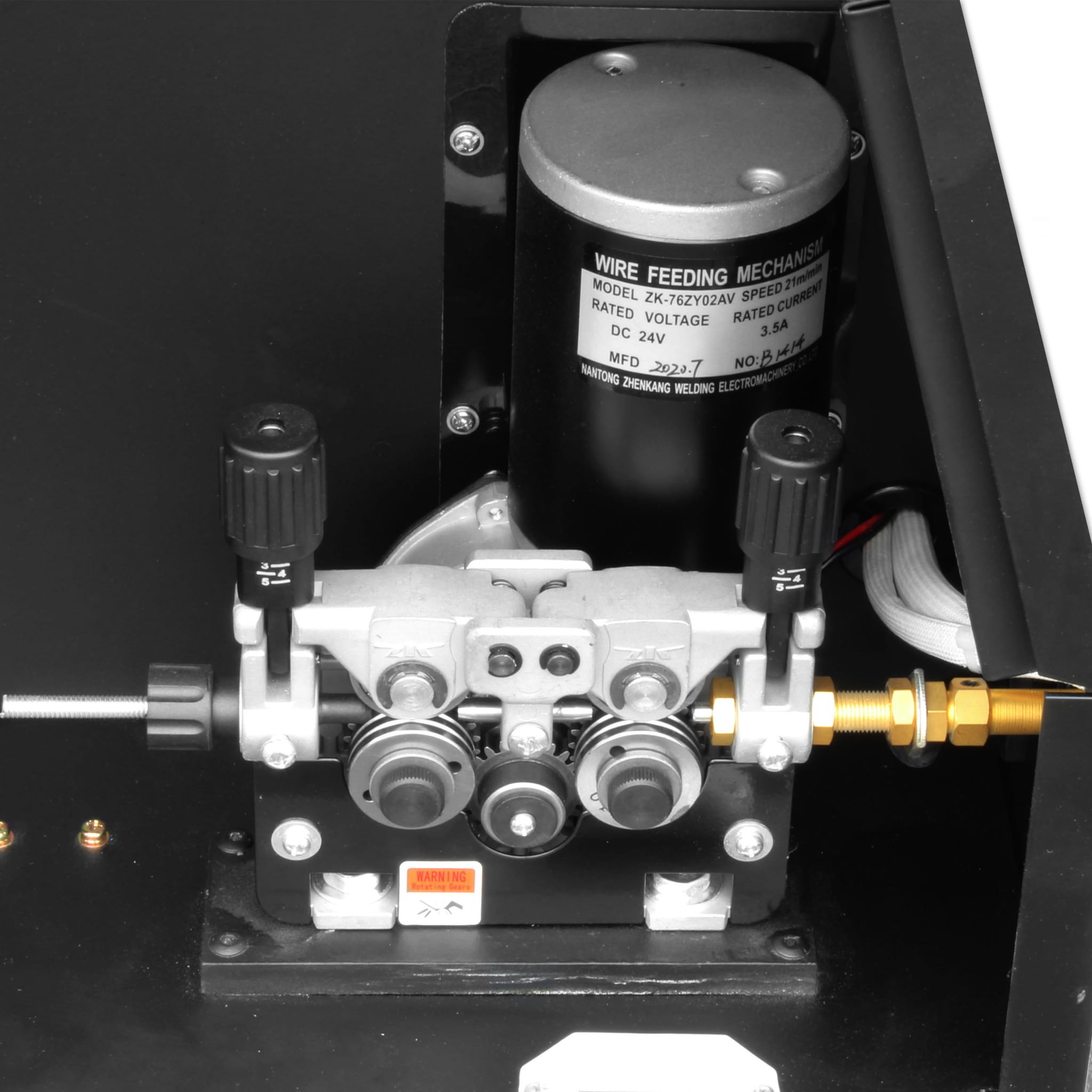Použití osvětlení v komoře podavače a závěsu pro vodicí kladky drátu výrazně usnadňuje výměnu cívky drátu a vodicích kladek a udržování pořádku.