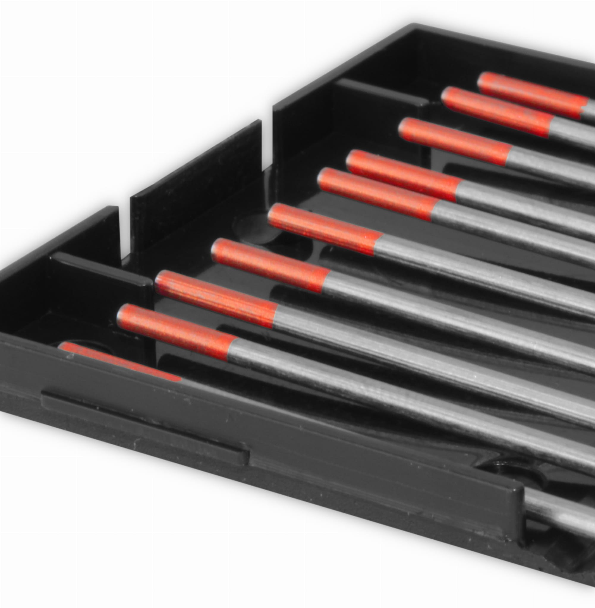 Červená wolframová elektroda Vogelmann WT-20 o průměru 2,4 mm je určena pro svařování metodou TIG. Obsahuje 98 % wolframu a 2 % thoria, což zajišťuje snadné zapalování, stabilní oblouk a dlouhou životnost elektrody. Elektrody WT-20 jsou ideální pro svařování stejnosměrným proudem (DC) a nacházejí využití při práci s ocelí, nerezí a neželeznými kovy.