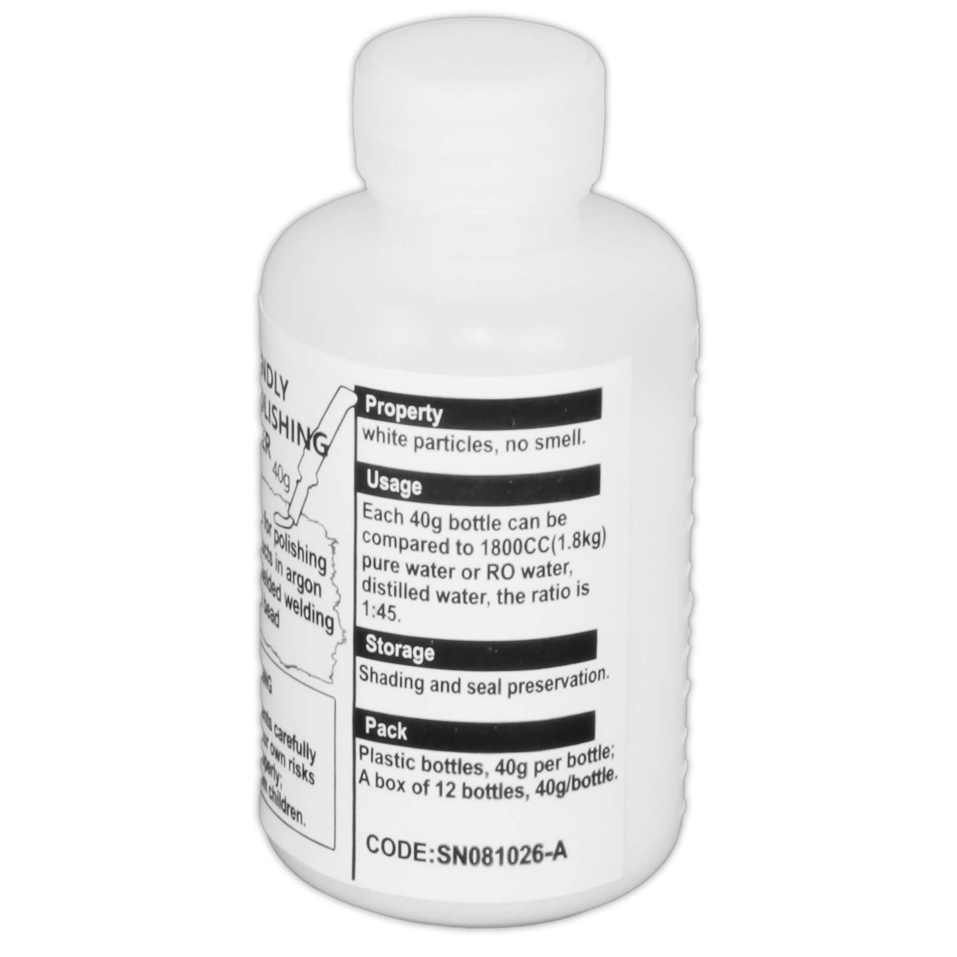 Čistiaci prášok WBC-100 je určený na prípravu leptacieho roztoku pre použitie v zariadení WBC-100 značky Sherman. Roztok sa pripravuje jednoduchým rozpustením prášku v destilovanej alebo demineralizovanej vode a slúži na efektívne čistenie zvarových spojov po zváraní. Zabezpečuje odstránenie oxidácie a nečistôt zo zvarov, čím zlepšuje ich vzhľad a kvalitu povrchu.