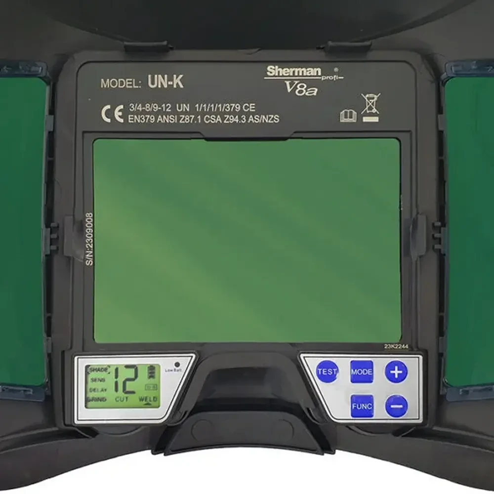 Automatická zváracia kukla Sherman-profi V8a je určená na ochranu očí a tváre pred iskrami, postrekmi a škodlivým žiarením pri elektrickom a plynom zváraní, pájení, kyslíkovom rezaní i brúsení. Ochranný systém dýchania PAPR s núteným prúdením vzduchu vytvára pretlak vnútri kukly, čímž bráni vdychovaniu prachu a zváracích zplodín. Ventilátor s dvojitým filtrom vzduchu je umiestnený na chrbte, čo výrazne znižuje množstvo škodlivín vdychovaných zváračom. Stmievací filter je vyrobený v technológii TRUE COLOR, ktorá zabezpečuje realistické podanie farieb a vysoký komfort práce.