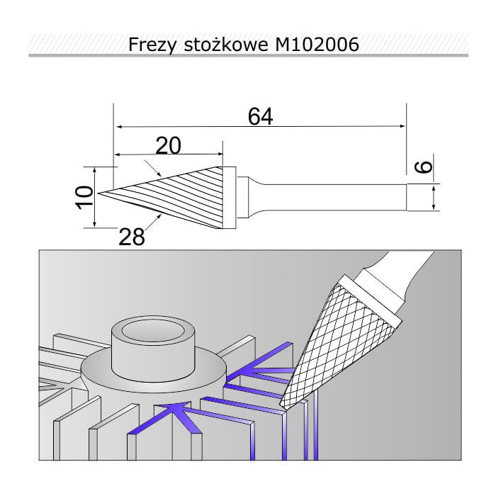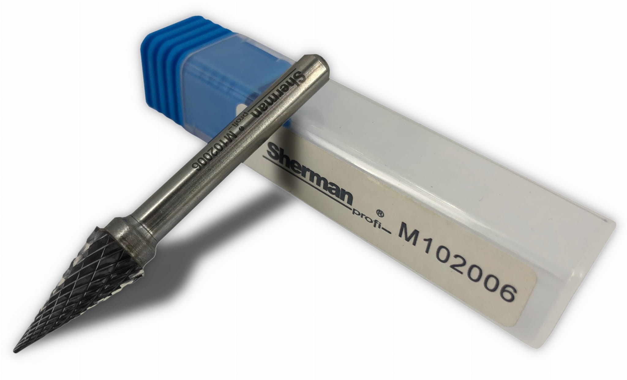 Kužeľový frézovací kolík typu M je určený na obrábanie ocele s dôrazom na spoľahlivý výkon a presné výsledky. Pracovná časť z tvrdokovu (karbidu volfrámu) zabezpečuje výborné rezné vlastnosti, vysokú odolnosť proti opotrebeniu a dlhú životnosť nástroja. Kolík je vhodný pre rôzne aplikácie pri obrábaní kovových materiálov.