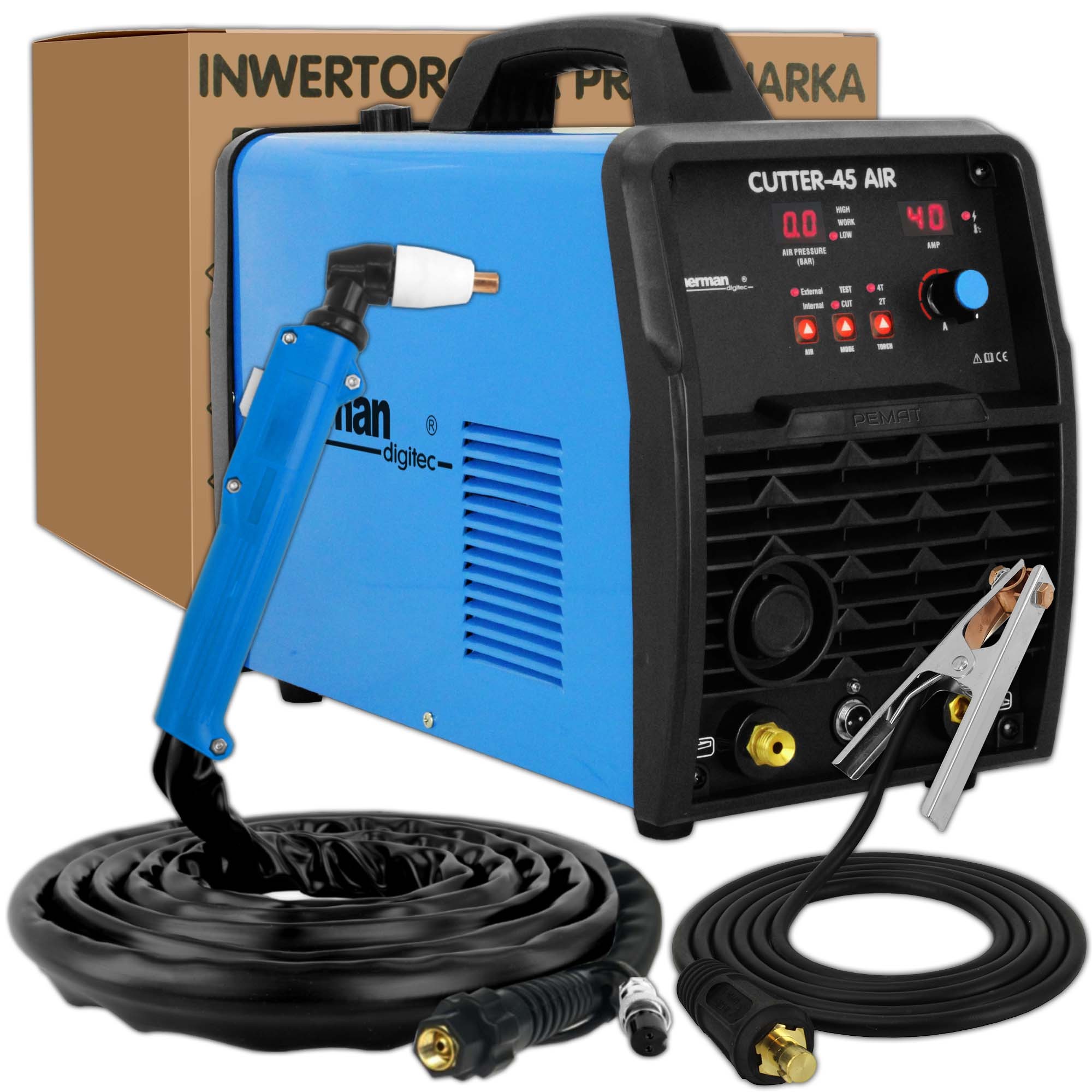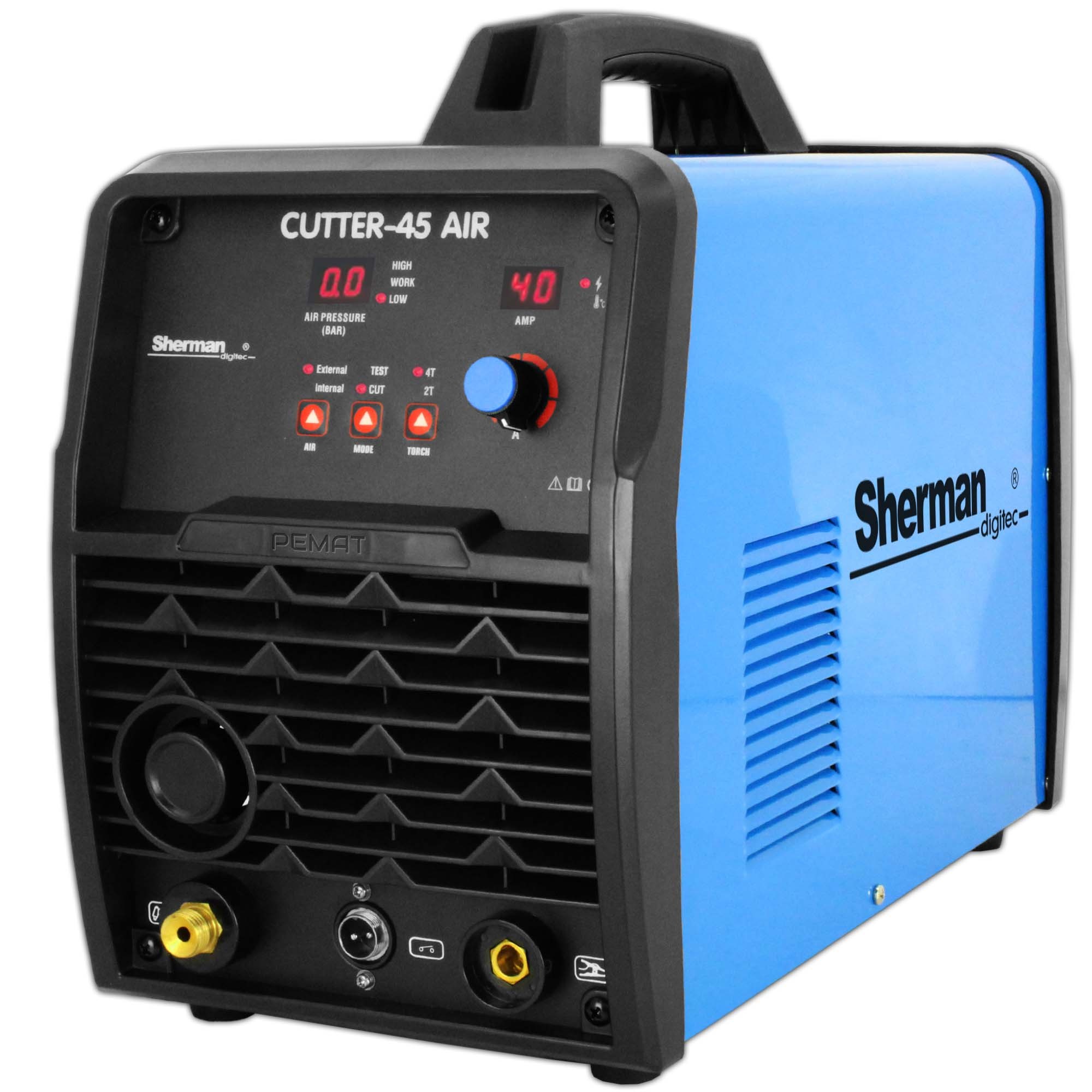 Plazmová rezačka Sherman Cutter 45 AIR je kompaktné a výkonné zariadenie určené na presné delenie kovových materiálov s hrúbkou až do 12 mm. Vďaka modernej IGBT technológii ponúka stabilnú prevádzku a vysokú účinnosť. Integrovaný vzduchový kompresor umožňuje mobilné použitie bez potreby externého zdroja vzduchu. Jednoduché ovládanie a horák PT-31 s dotykovým štartom zabezpečujú pohodlnú a efektívnu prácu.