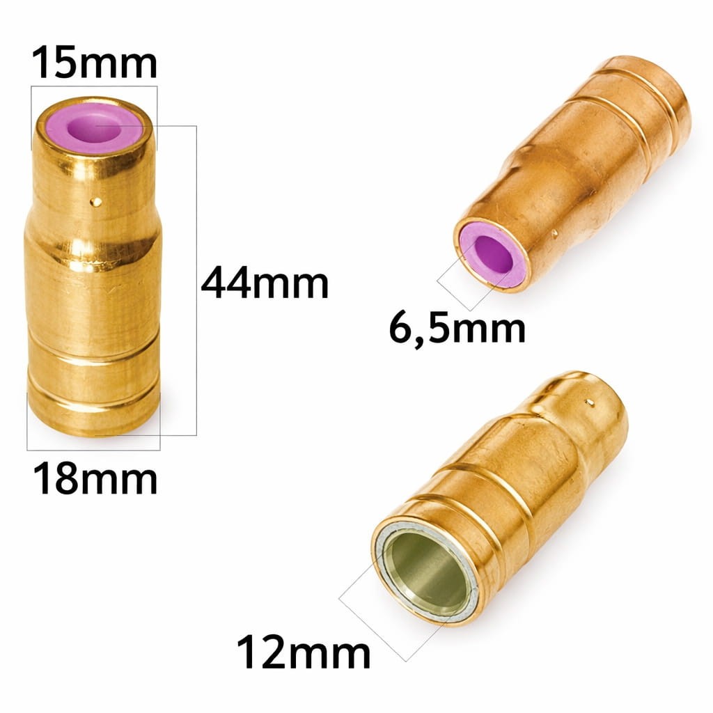 | 1601001 | Kužeľová štandardná | 12 mm | Univerzálne zváranie MIG/MAG | Dobrá rovnováha plynu a viditeľnosti | Menej presná v úzkych priestoroch |