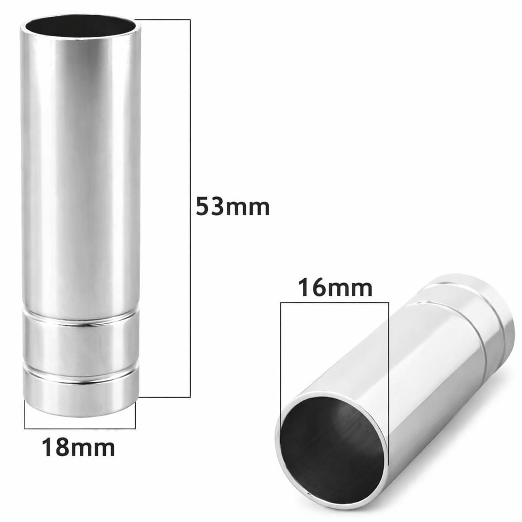 Valcové plynové hubice so širokým výstupným otvorom určené pre zváracie horáky typu MB-15. Zabezpečujú rovnomerný tok ochranného plynu pri zváraní metódou MIG/MAG, čo prispieva k stabilnému oblúku a čistému zvaru. Odolné spracovanie umožňuje spoľahlivé používanie aj pri vyšších teplotách a rozstreku.
