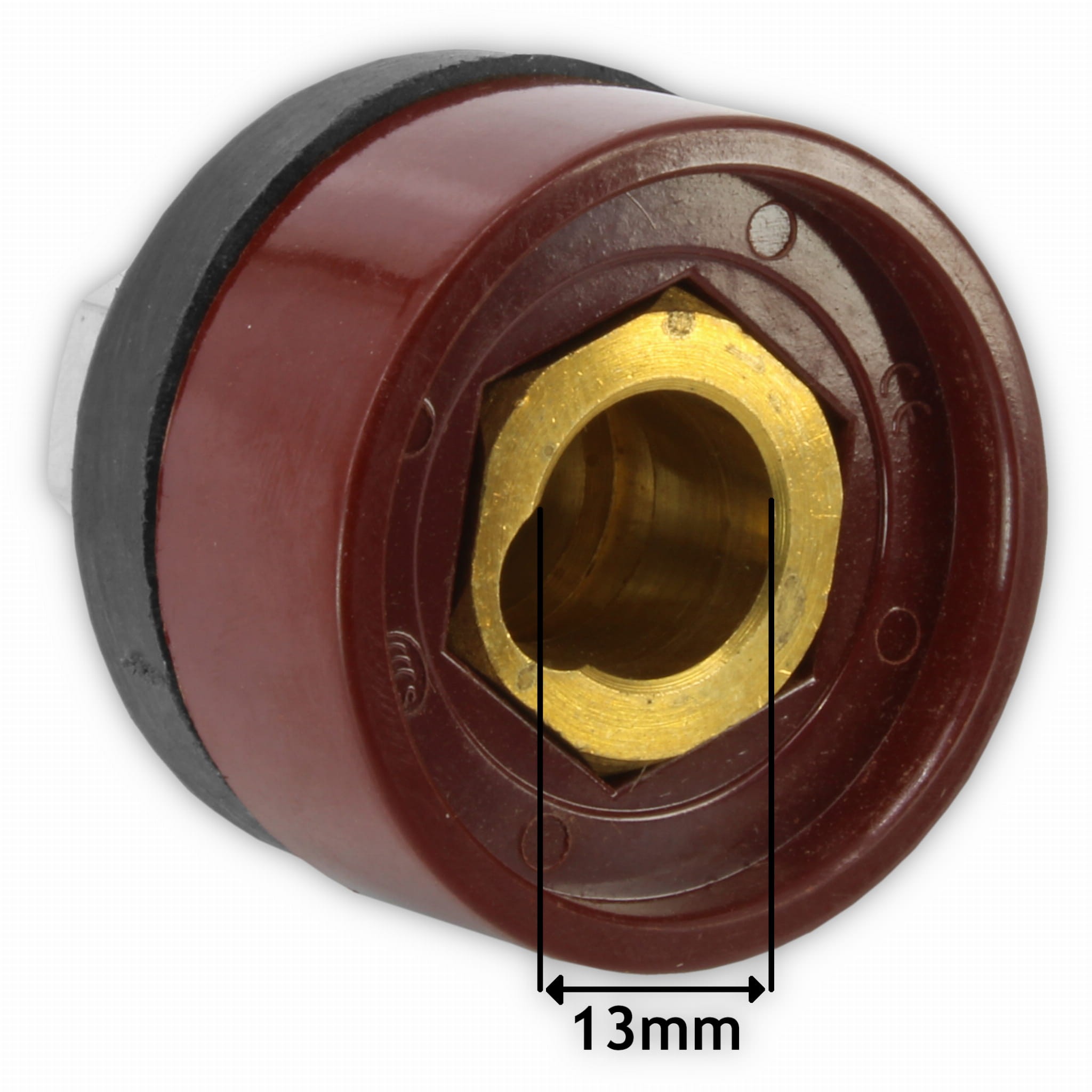 Univerzálna panelová rýchlospojka (zásuvka) červenej farby je určená na montáž do zváracích zariadení. Slúži na pripojenie zváracích káblov a zabezpečuje spoľahlivé elektrické spojenie medzi káblom a zváracím strojom. Je vhodná na použitie s poloautomatickými strojmi MIG/MAG, MMA invertormi aj TIG zváračkami väčšiny výrobcov.