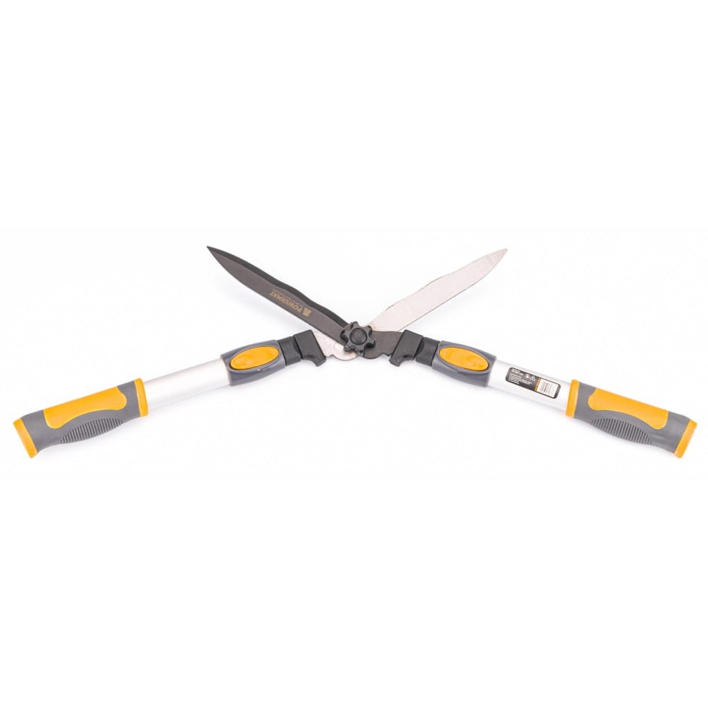 Nožnice majú teleskopické rameno s možnosťou nastavenia dĺžky v 5 polohách, čo uľahčuje prácu v rôznych uhloch a ťažko dostupných miestach. Gumené nárazníky tlmia nárazy pri práci a zvyšujú komfort používania.